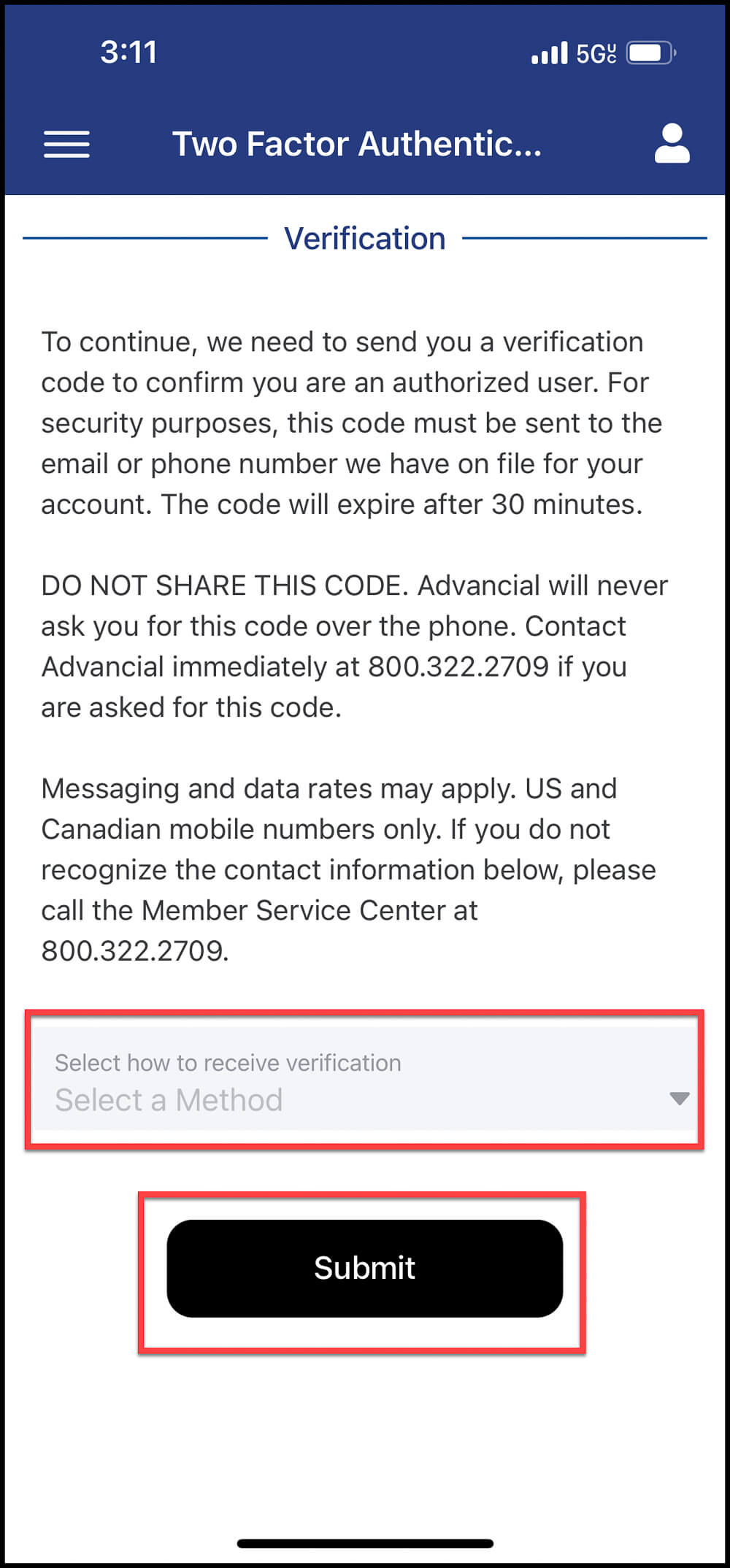 - Select whether you want the verification code to be sent to your e-mail or phone number