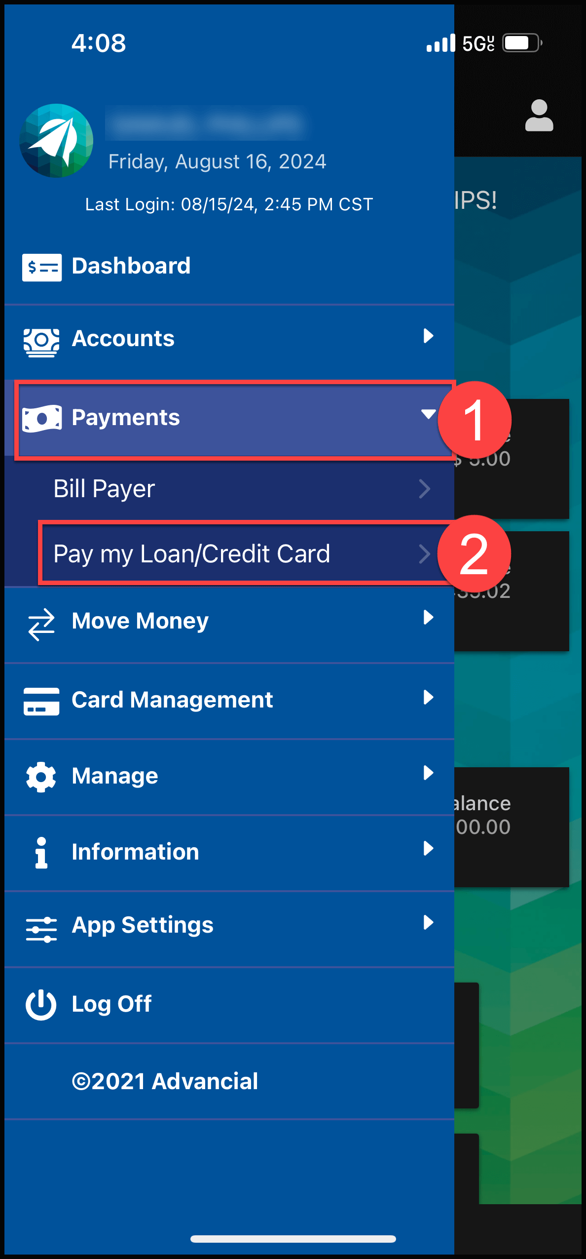 - Log in to the Advancial Mobile App