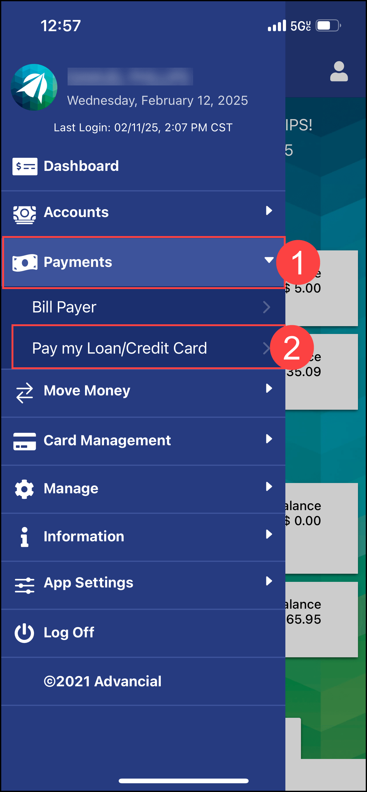 - Log in to the Advancial Mobile App