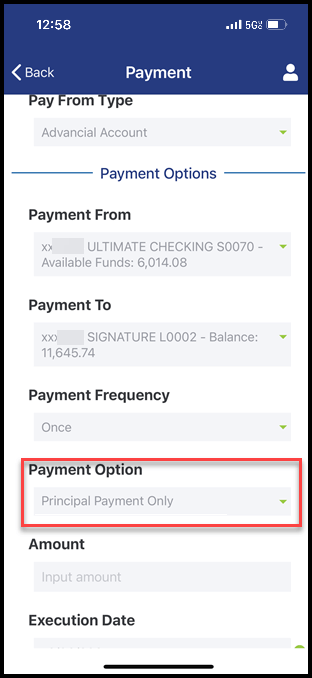 - Note: Principal payments must be funded from an Advancial account, not an external financial institution