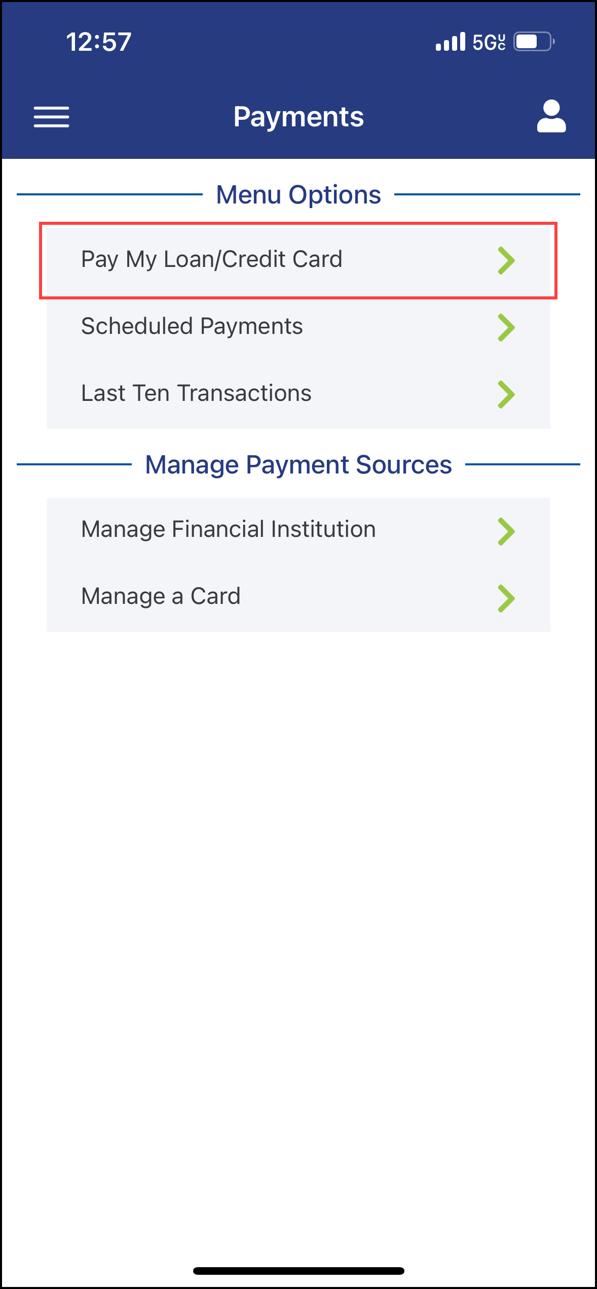 - Select "Pay my Loan/Credit Card"