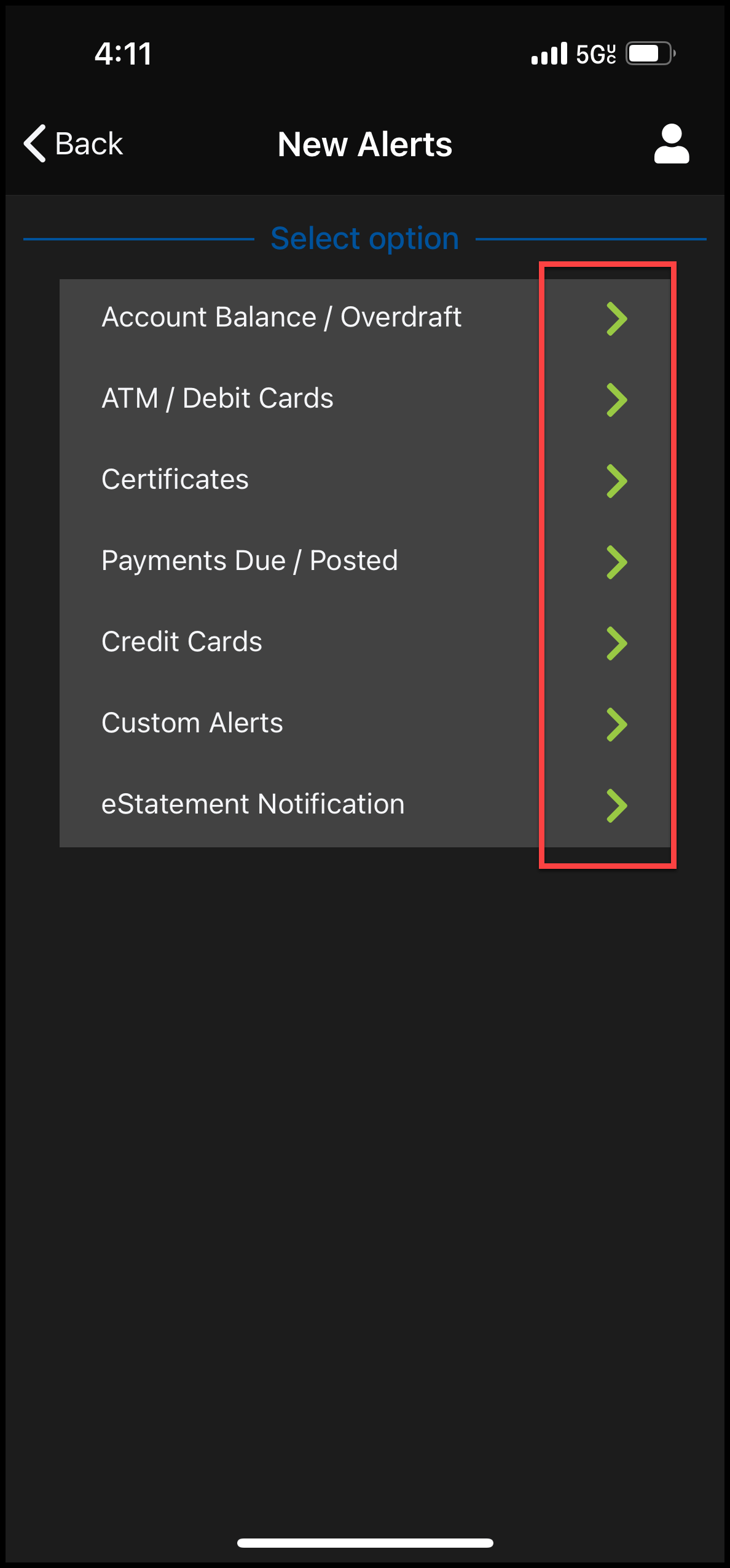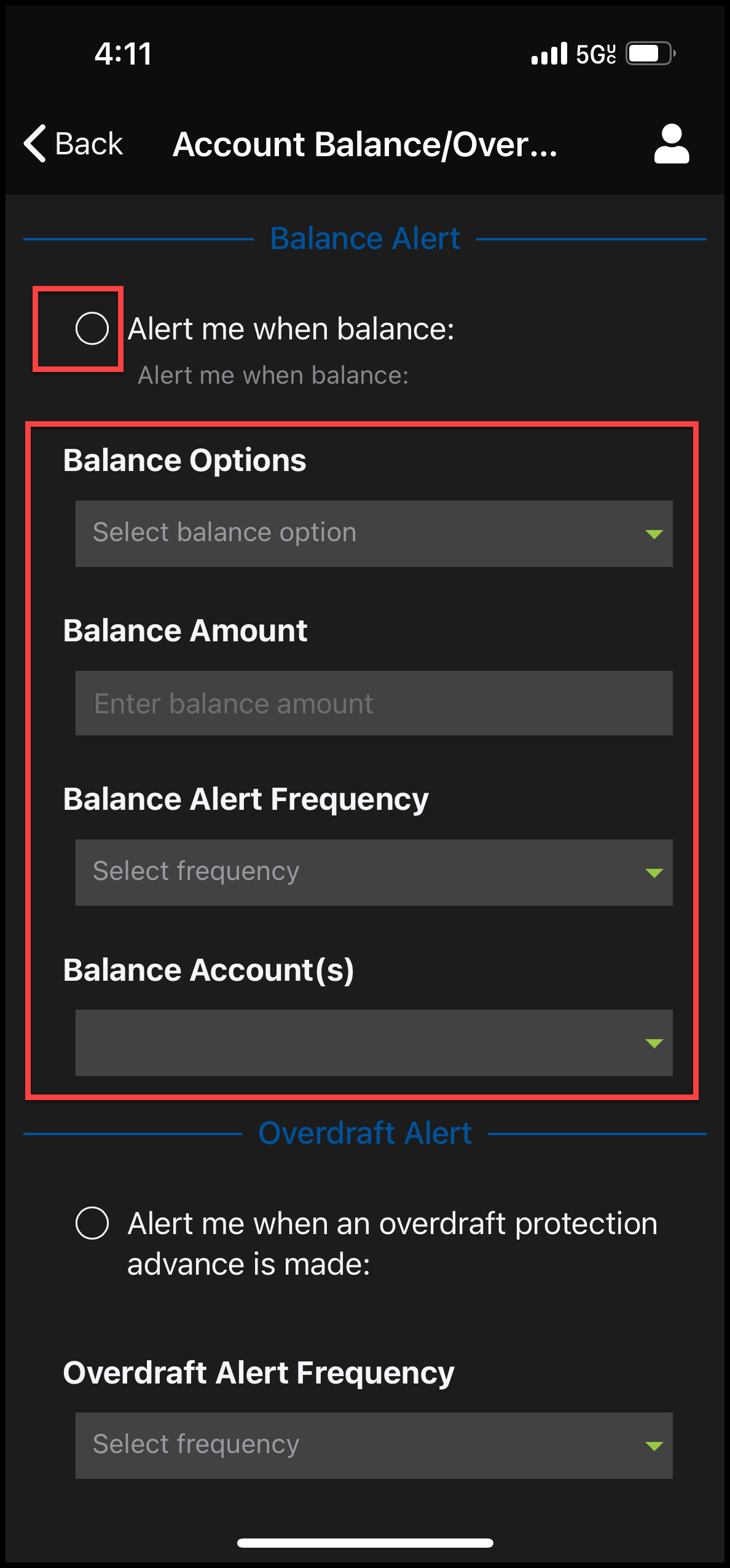 - Accounts > Alerts