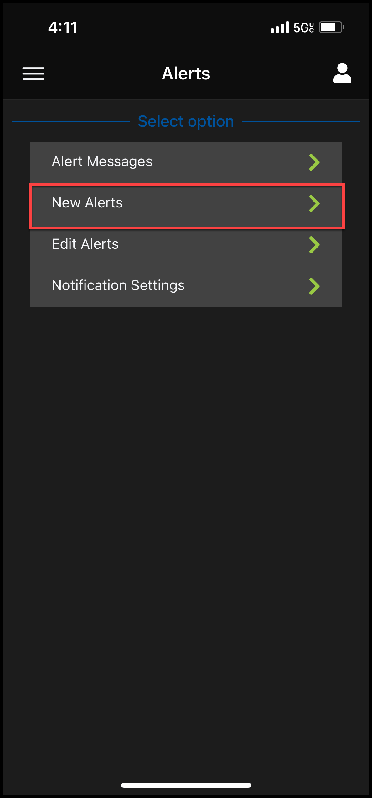 - Select "New Alerts"