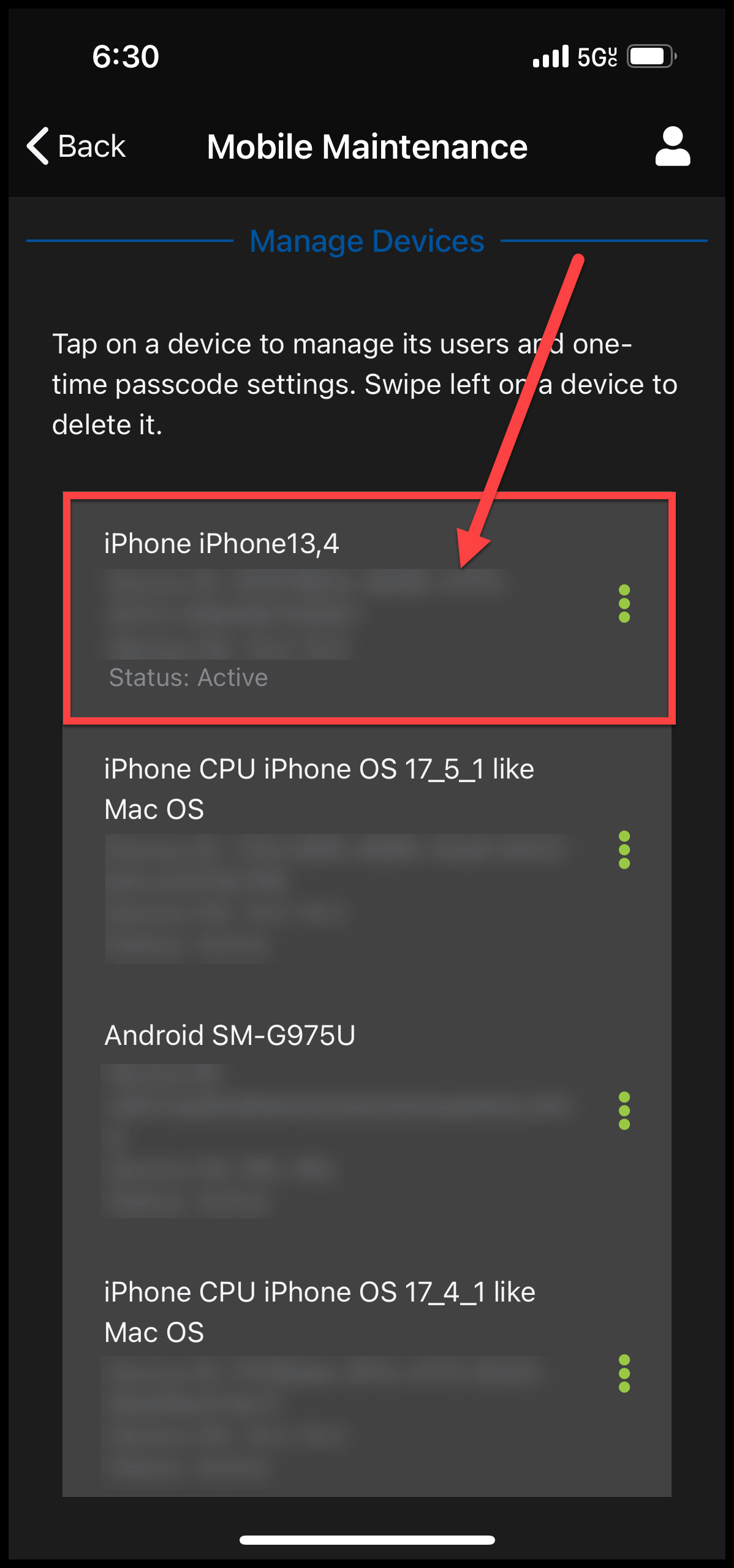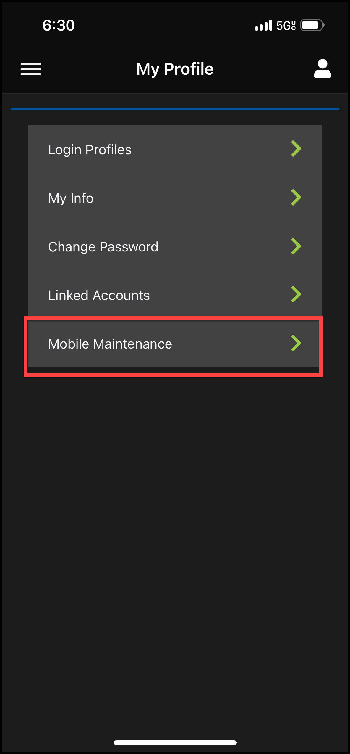 - Select "Mobile Maintenance"