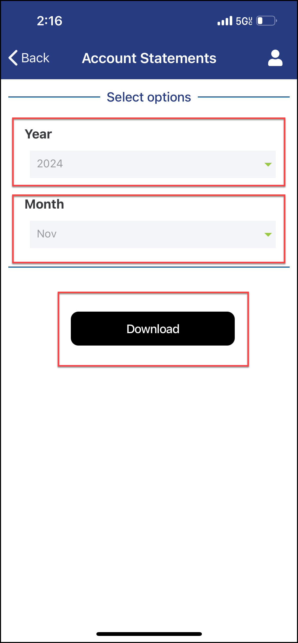 - Select the Year and Month of the statement you want to view