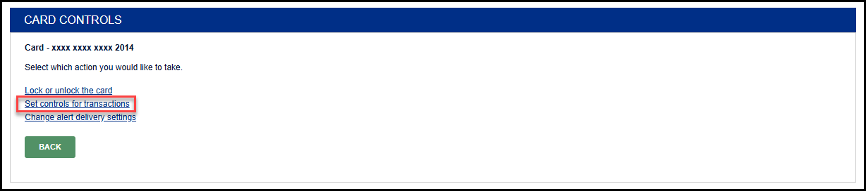 - Select "Set controls for transactions"