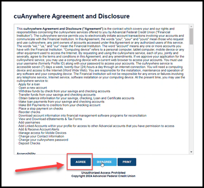 - Read through the cuAnywhere Agreement and Disclosure