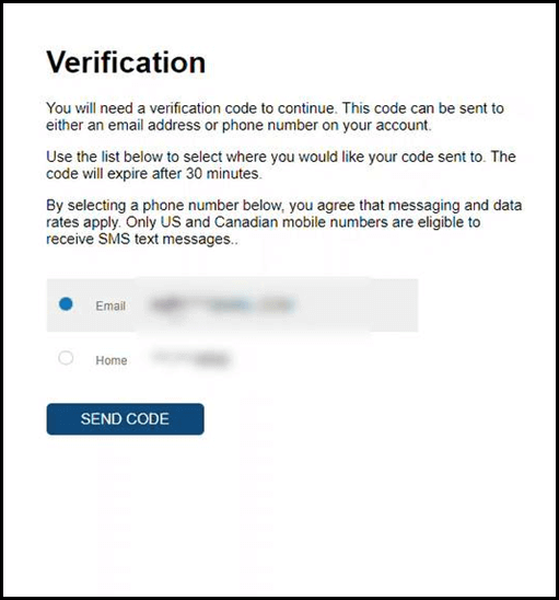 - Select whether you want the verification code sent to your email address or phone number