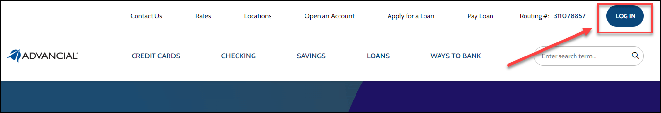 - On Advancial's home page, at the top right-hand corner, select "Log In"